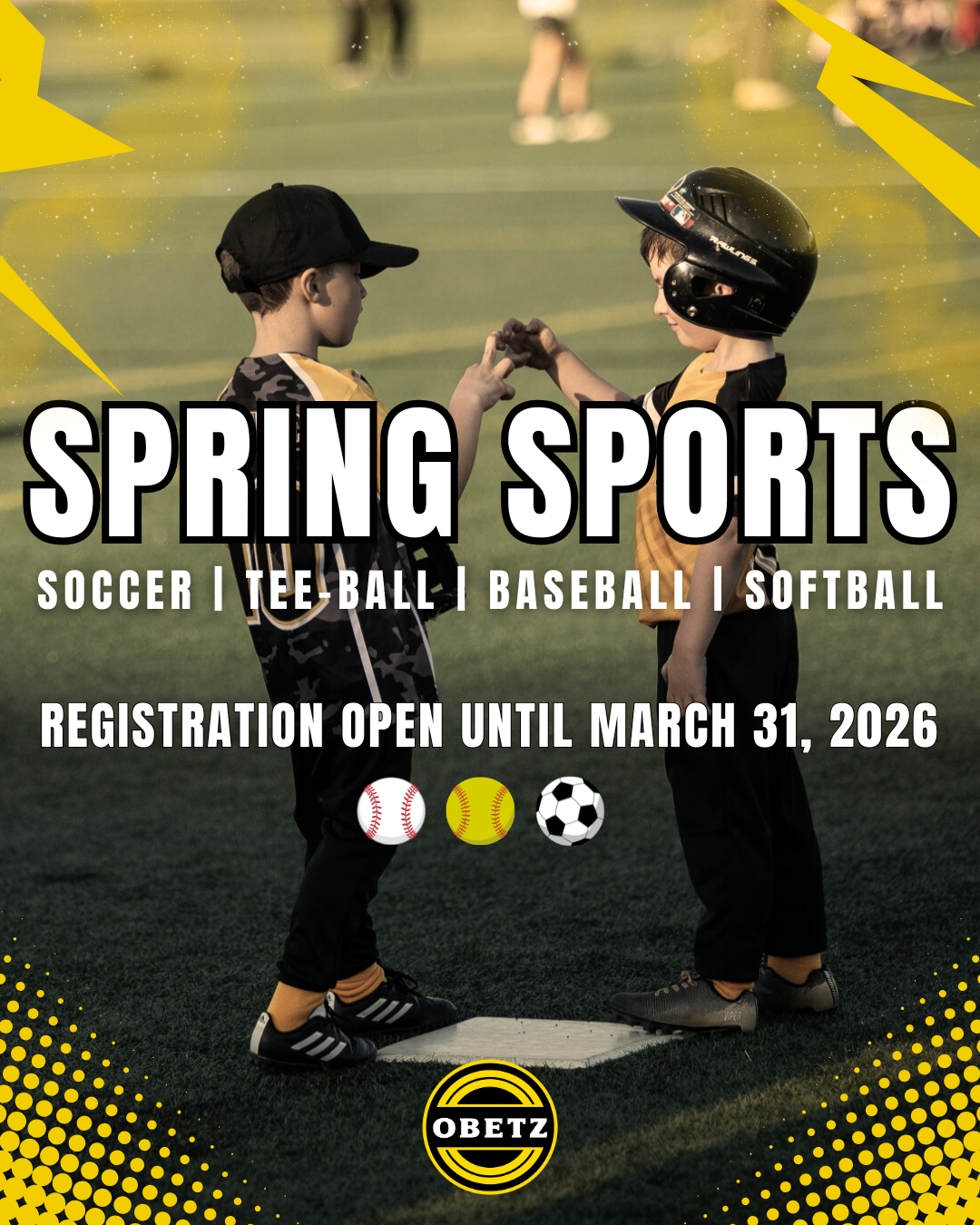 The registration fee for the 2026 spring season is $75 for Obetz residents and $95 for non-residents. Tee-ball is $60 for residents and $80 for non-residents. Families are encouraged to register early, as registration will close on March 31.